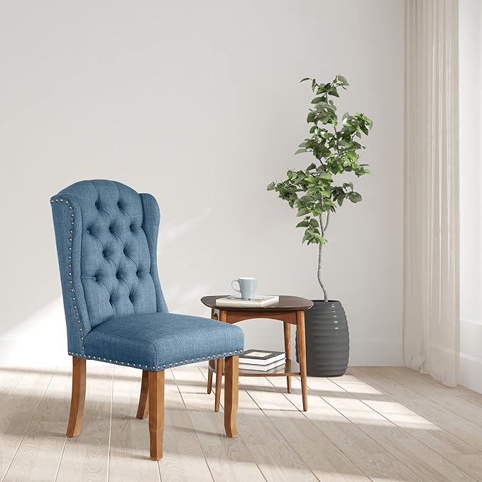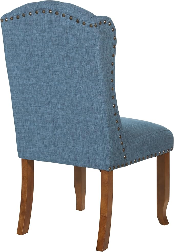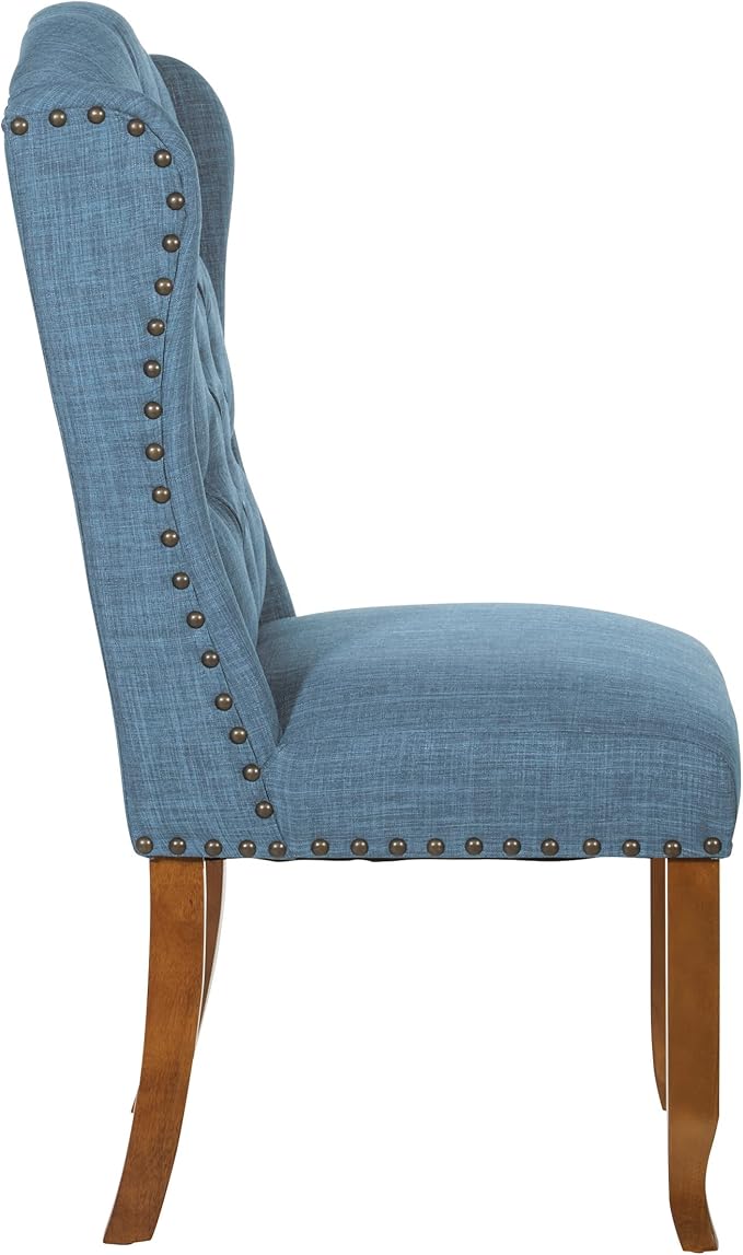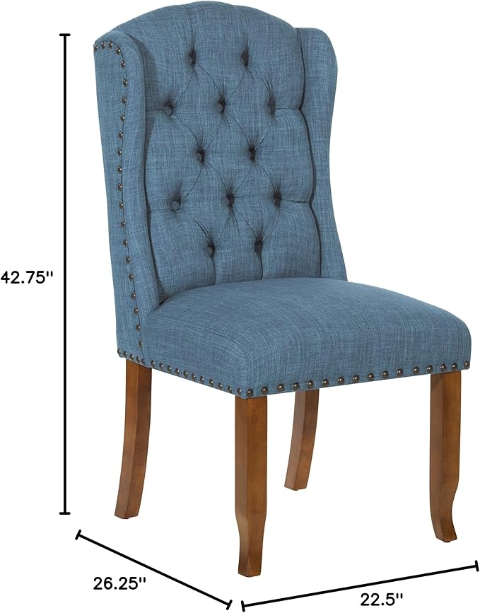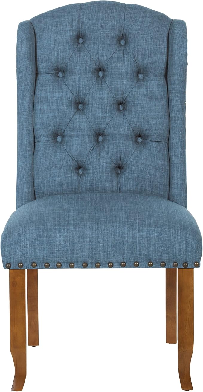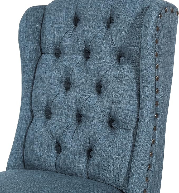 OSP Home Furnishings Jessica Button Tufted Wingback Upholstered Dining Chair with Wood Legs, Navy Blue Fabric