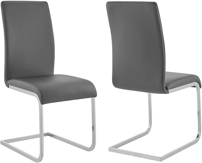 Armen Living Amanda Dining Grey faux leather with Chrome finish Kitchen & Dining Chair - Set of 2, Height