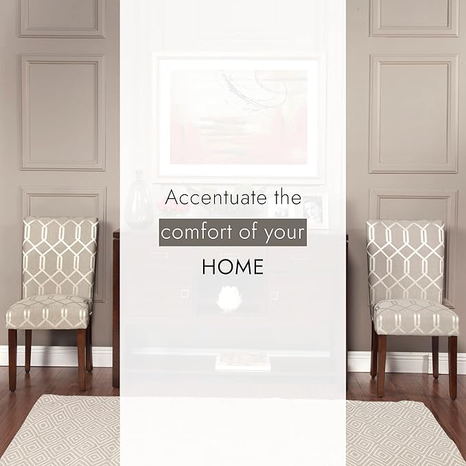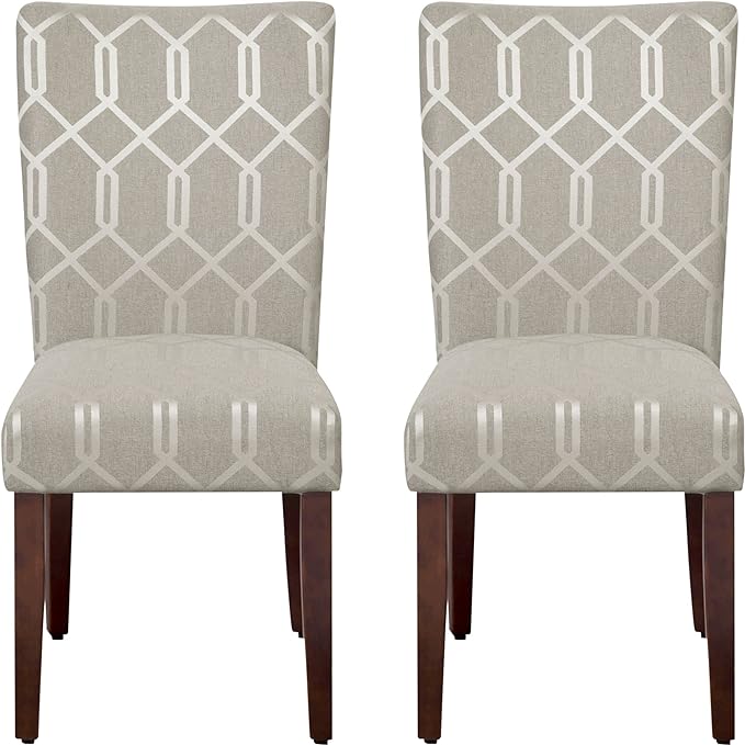 HomePop Parsons Classic Upholstered Accent Dining Chair, Set of 2, 23.5"D x 19"W x 38"H, Pewter Grey and Lattice Cream