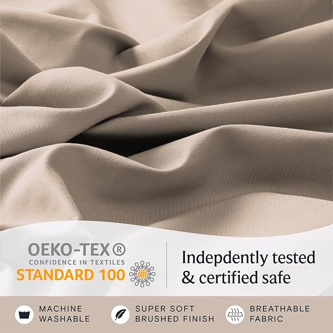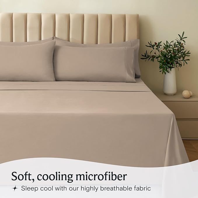 LuxClub 6 PC California King Sheet Set, Breathable Luxury Bed Sheets, Deep Pockets 18" Wrinkle Free Cooling Sheets Machine Washable Hotel Bedding Silky Soft - Light Khaki Cal King