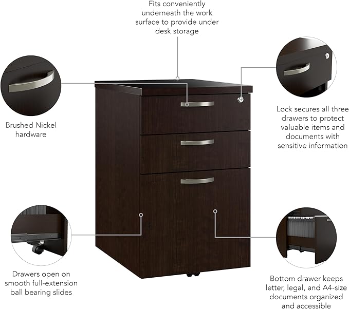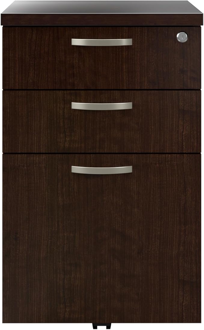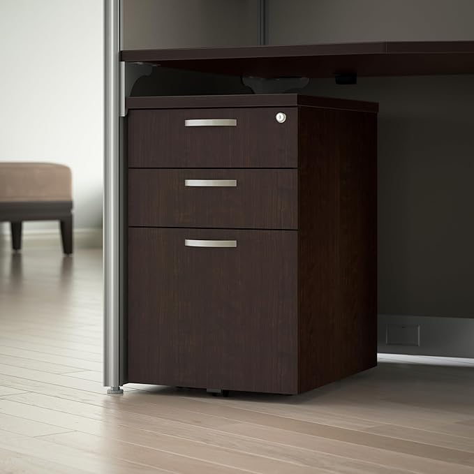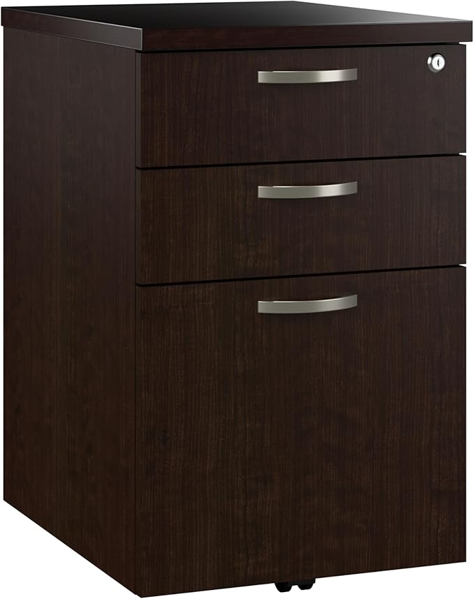 Bush Business Furniture Office in an Hour 3 Rolling File Cabinet | Mobile Under Desk Drawers for Letter, Legal, and A4-size Document Storage, Mocha Cherry