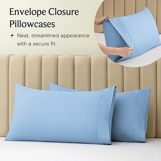 LuxClub 6 PC California King Sheet Set, Breathable Luxury Bed Sheets, Deep Pockets 18" Wrinkle Free Cooling Sheets Machine Washable Hotel Bedding Silky Soft - Sky Cal King