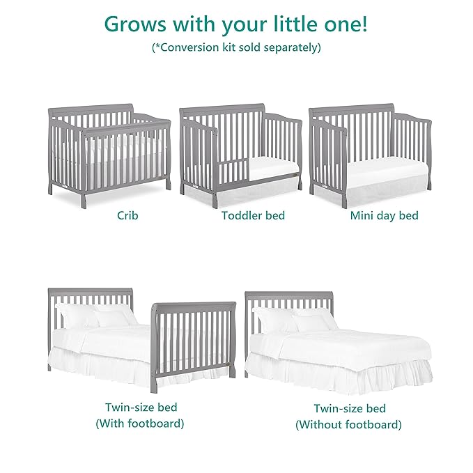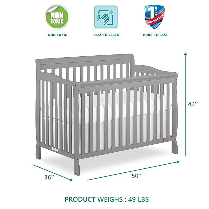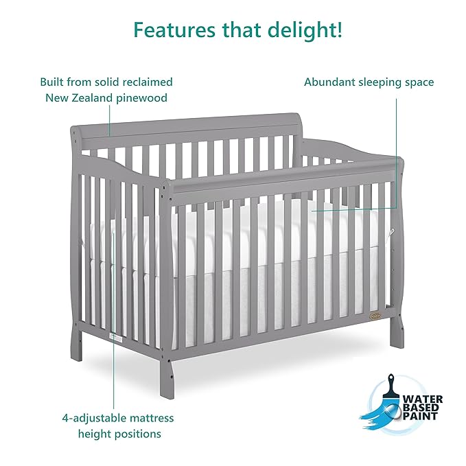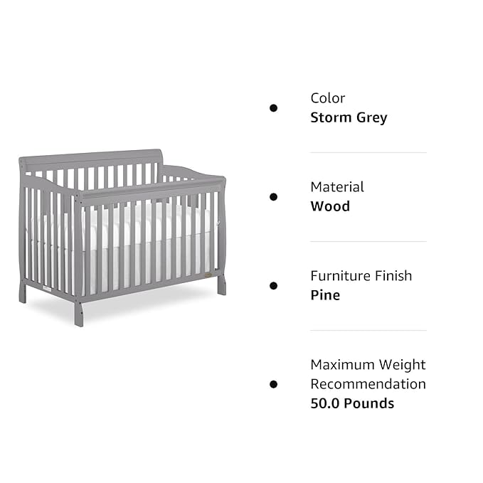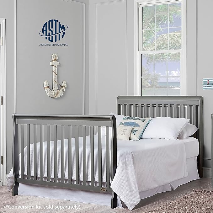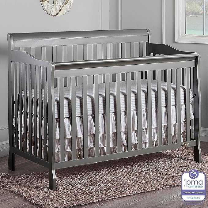 Dream On Me Ashton 4-In-1 Convertible Crib In Storm Grey, Greenguard Gold, JPMA Certified, Non-Toxic Finishes, Features 4 Mattress Height Settings, Made Of Solid Pinewood
