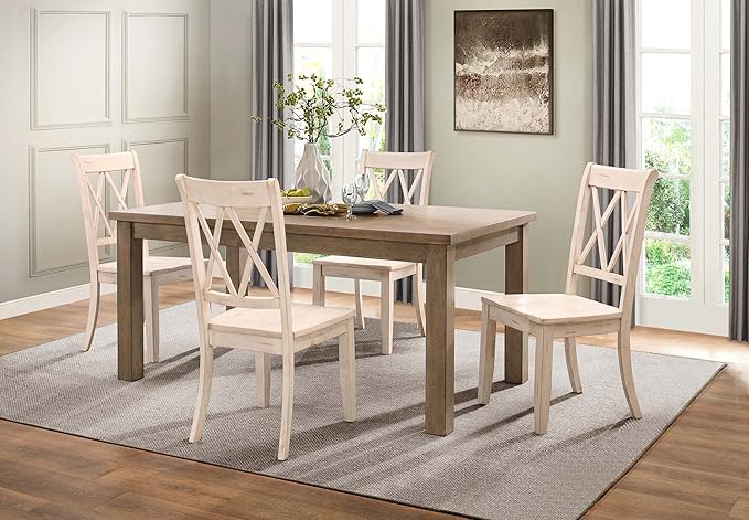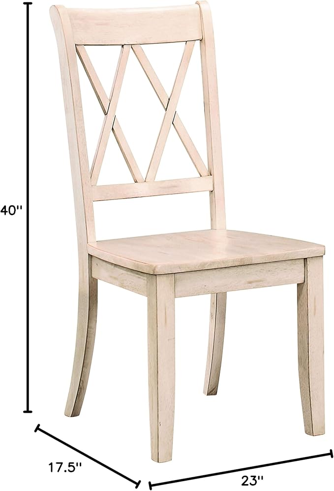 About This Rustic look dining chairs in anitque white finish Features wooden seat top and double X-back Well constructed wood...