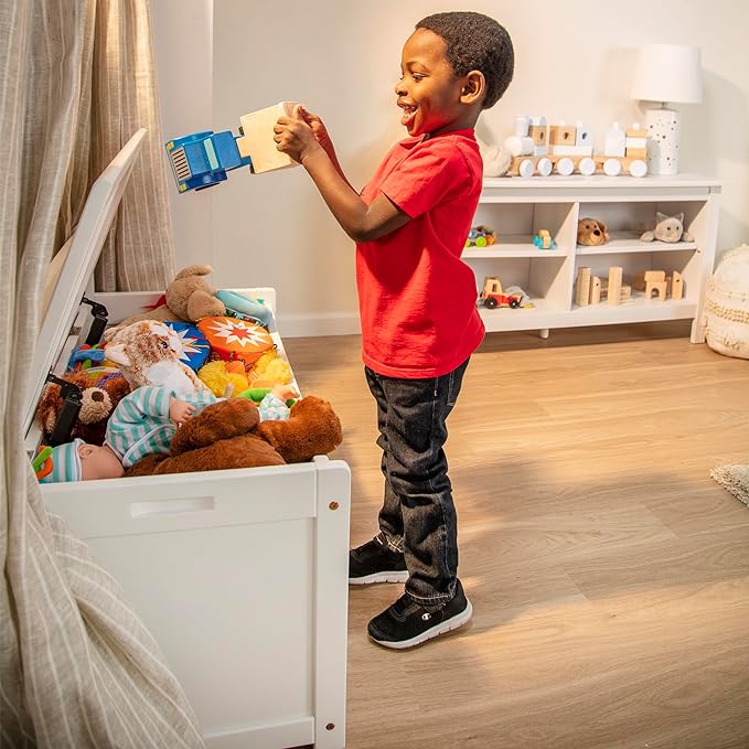 Melissa & Doug Wooden Toy Chest - White Furniture for Playroom - Kids Toy Box, Wooden Storage Organizer, Children's Furniture