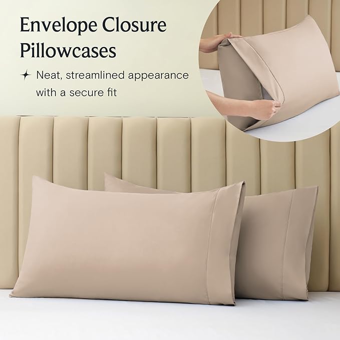 LuxClub 6 PC King Sheet Set, Breathable Luxury Bed Sheets, Deep Pockets 18" Wrinkle Free Cooling Bed Sheets Machine Washable Hotel Bedding Silky Soft - Light Khaki King