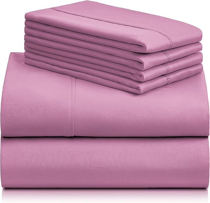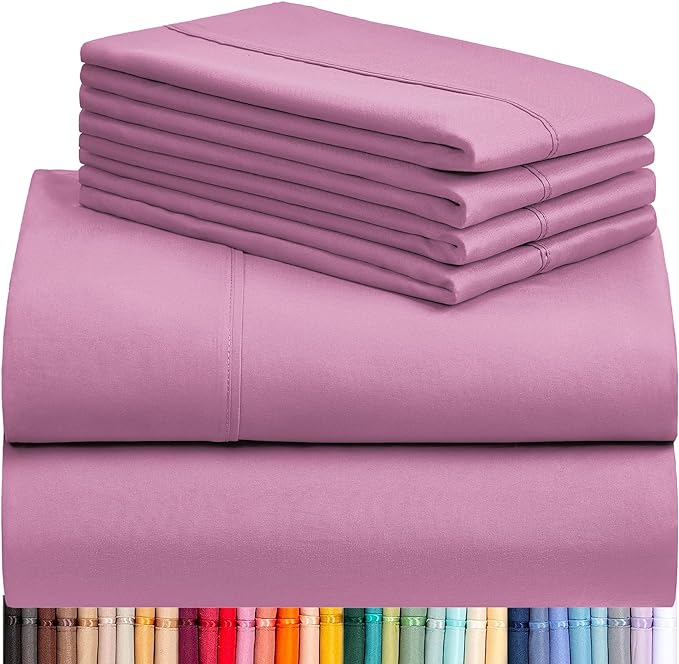 LuxClub 6 PC King Sheet Set, Breathable Luxury Bed Sheets, Deep Pockets 18" Wrinkle Free Cooling Bed Sheets Machine Washable Hotel Bedding Silky Soft - Light Plum King
