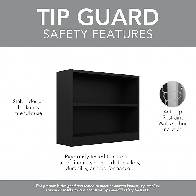 Bush Furniture Universal Small 2 Shelf Bookcase in Black - Set of 2, Matching Storage and Display Bookshelves for Home Office or Living Room Organization