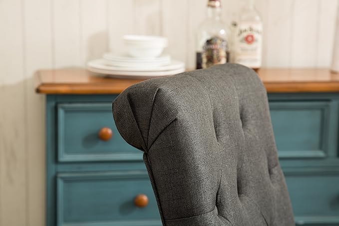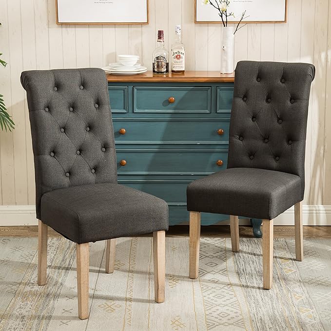Roundhill Furniture Habit Solid Wood Tufted Parsons Charcoal Dining Chair, Set of 2