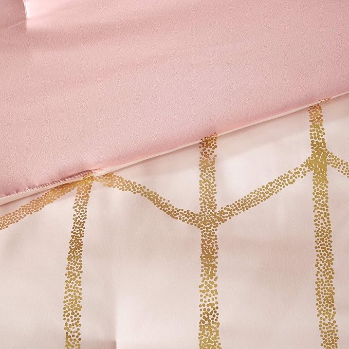 Intelligent Design Raina King / Cal King Comforter Set, Soft Microfiber Comforter Set King, Modern Geometric Metallic Bed Set, 5 Pieces College Bedding Comforter Set with 2 Shams, 2 Toss Pillows Blush