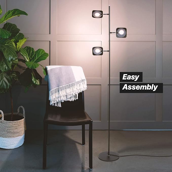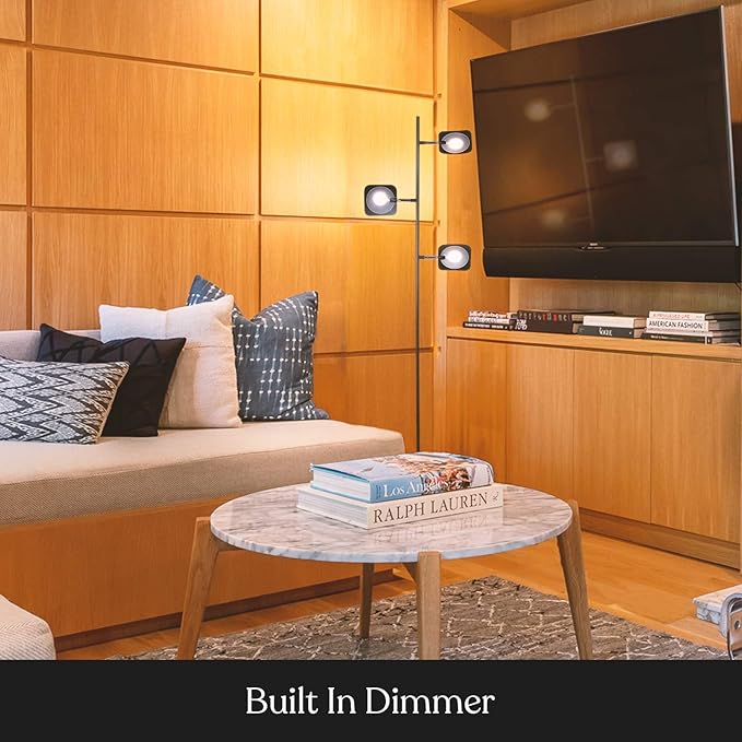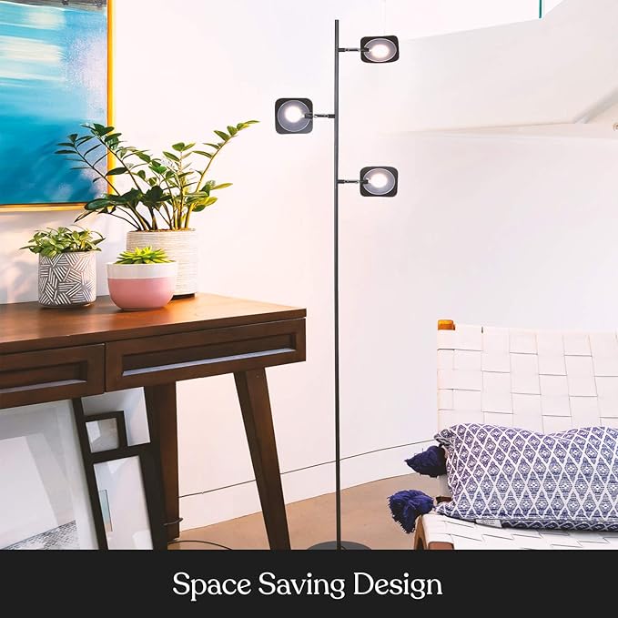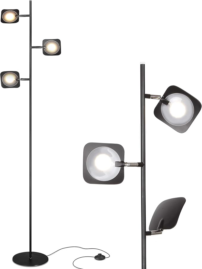 Brightech Tree Floor Lamp for Living Rooms & Offices, Dimmable Standing Lamp for Bedroom Reading, LED Spotlight Floor Lamp, Tall Lamp with Adjustable Panels for Minimal Space Use - Black