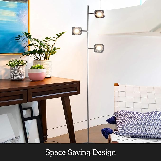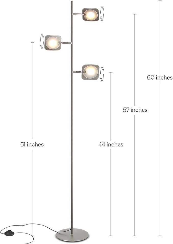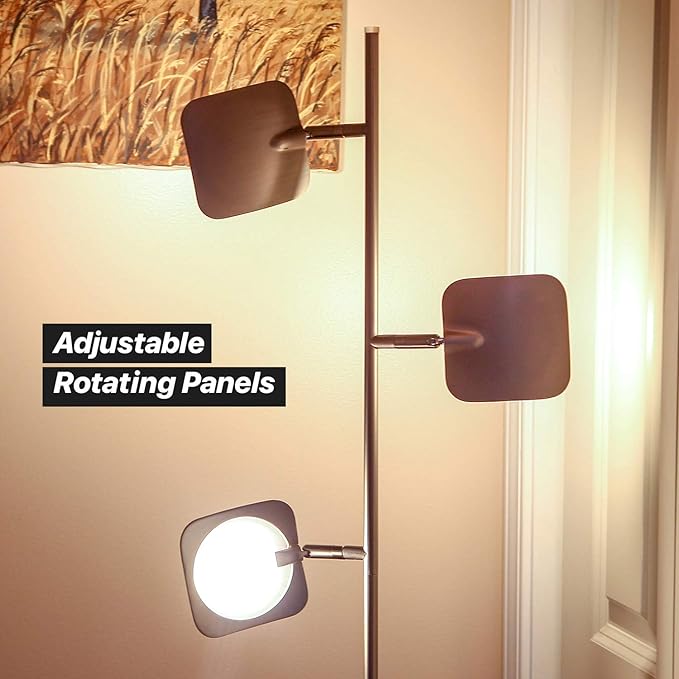 Brightech Tree Floor Lamp for Living Rooms & Offices, Dimmable Standing Lamp for Bedroom Reading, LED Spotlight Floor Lamp, Tall Lamp with Adjustable Panels for Minimal Space Use - Satin Nickel