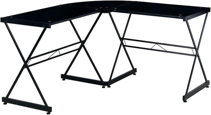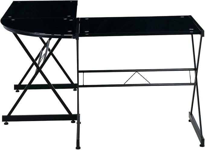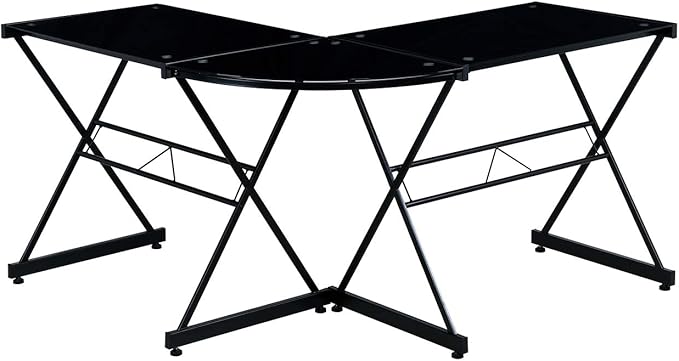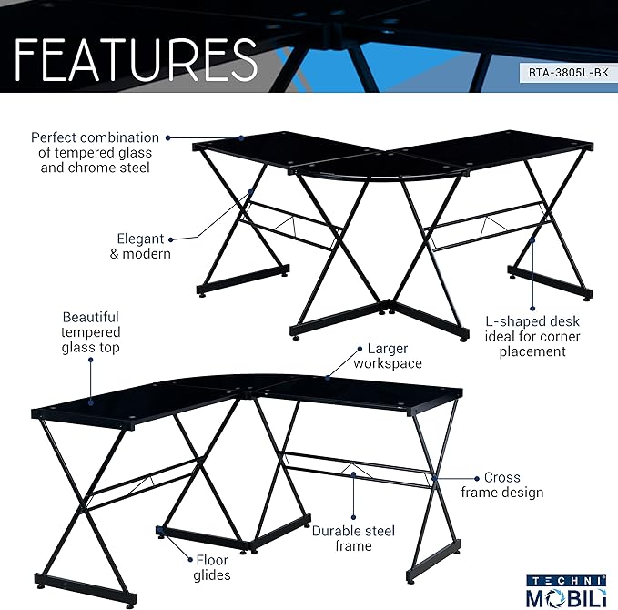 Techni Mobili RTA-3805L-BK L-Shaped Glass Computer Desk, Black, 51" D x 51" W x 29" H