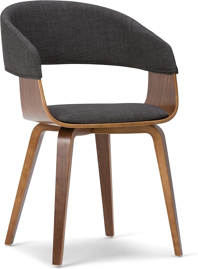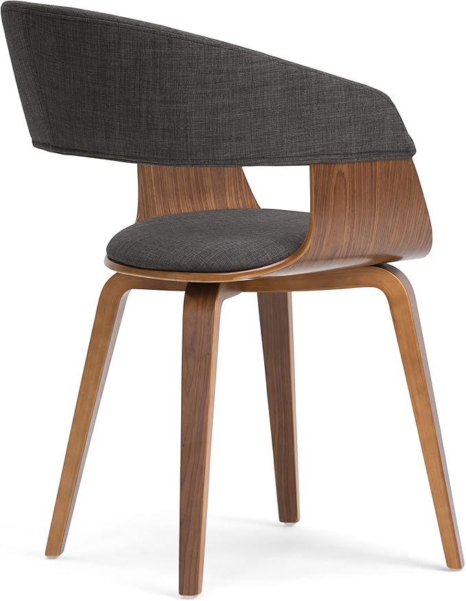 SIMPLIHOME Lowell 17 Inch Mid Century Modern Bentwood Dining Chair in Charcoal Grey Linen Look Fabric, For the Dining Room