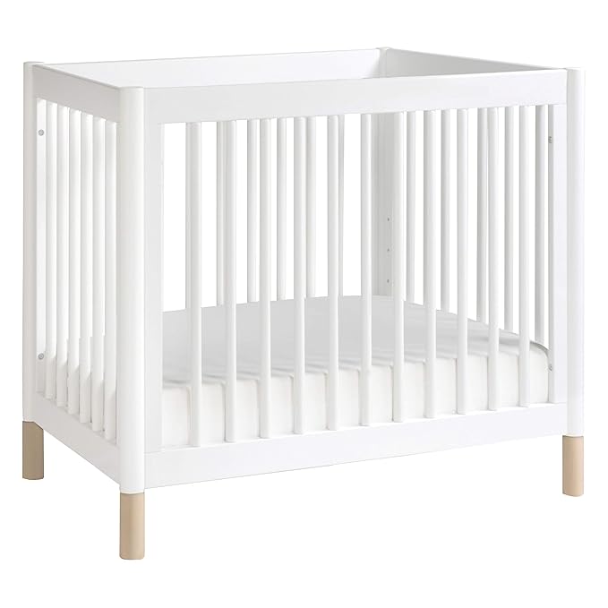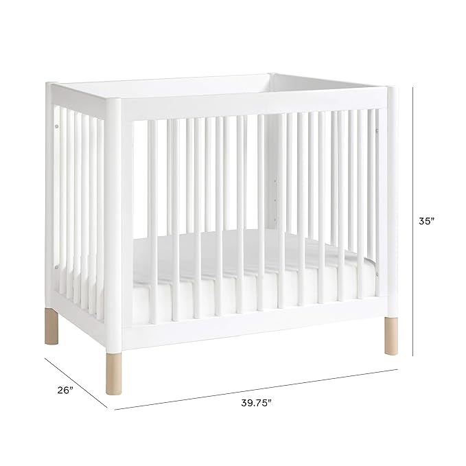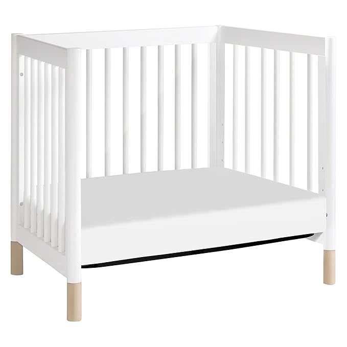 Babyletto Gelato 4-in-1 Convertible Mini Crib in White and Washed Natural, Greenguard Gold Certified