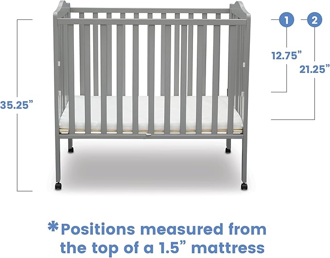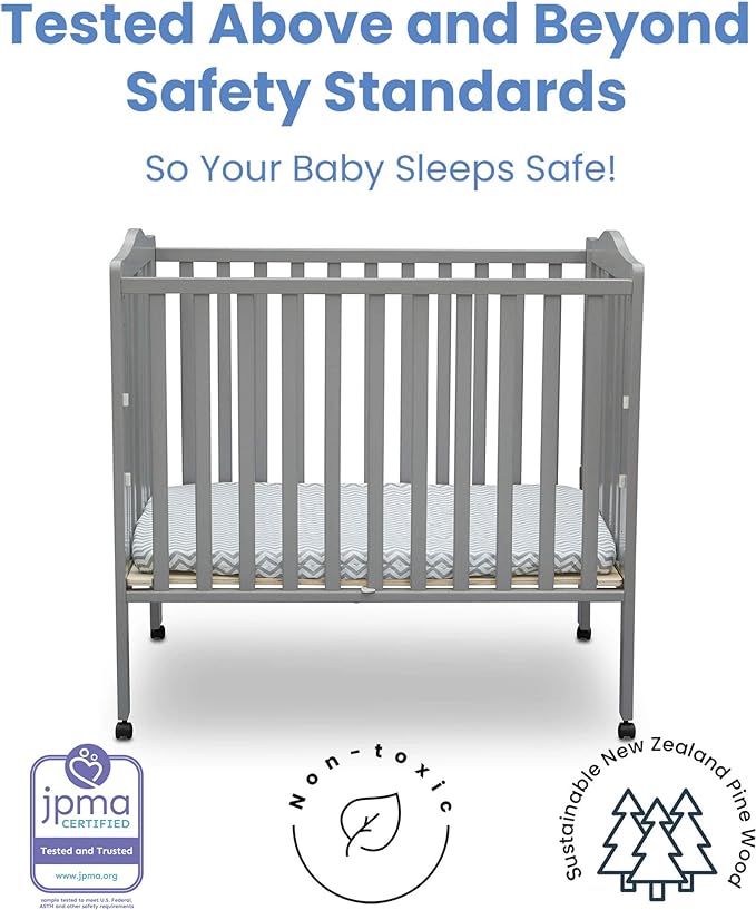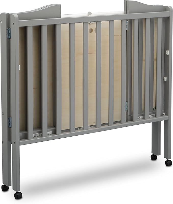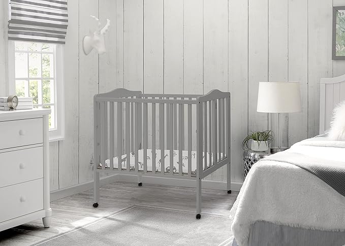 Delta Children Folding Portable Mini Baby Crib with 1.5-inch Mattress - Greenguard Gold Certified, Grey