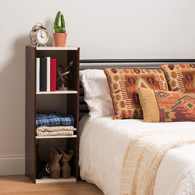 3-Tier 12" Wide Cubby Storage Bookshelf with Adjustable Shelves, Sturdy Versatile Easy Assembly Stackable Storage Shelf for Saving Space, Walnut Brown/White