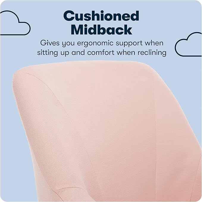 Serta Leighton Modern Office Chair, Stylish Mid-Back Desk Chair, Rivet Detail, Serta Quality Memory Foam, Armchair with Wheels, Vanity Chair, Swivel Chrome Metal Base, Twill Fabric, Blush Pink