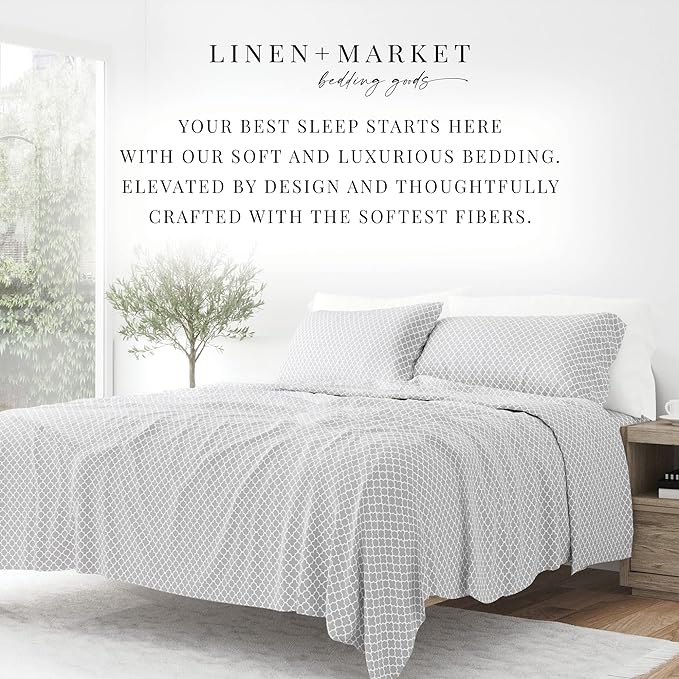 4 Piece King Bedding Sheet Set (Gray Quatrefoil) - Sleep Better Than Ever with These Ultra-Soft & Cooling Bed Sheets for Your King Size Bed - Deep Pocket Fits 16" Mattress