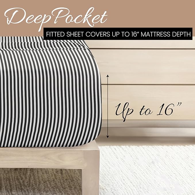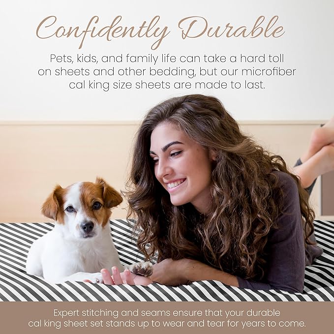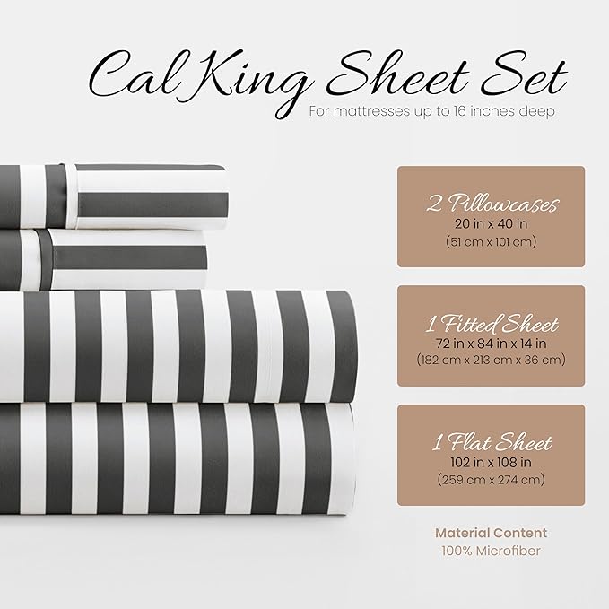 Linen Market 4 Piece California King Bedding Sheets Set (Gray Ribbon) - Sleep Better Than Ever with These Ultra-Soft & Cooling Bed Sheets for Your Cal King Size Bed - Deep Pocket Fits 16" Mattress