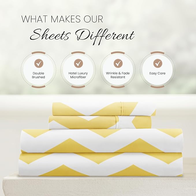 Linen Market 4 Piece California King Bedding Sheets Set (Yellow Arrow) - Sleep Better Than Ever with These Ultra-Soft & Cooling Bed Sheets for Your Cal King Size Bed - Deep Pocket Fits 16" Mattress