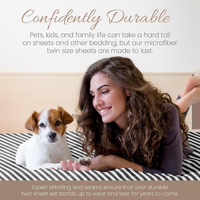 Linen Market 3 Piece Twin Bedding Sheet Set (Gray Ribbon) - Sleep Better Than Ever with These Ultra-Soft & Cooling Bed Sheets for Your Twin Size Bed - Deep Pocket Fits 16" Mattress