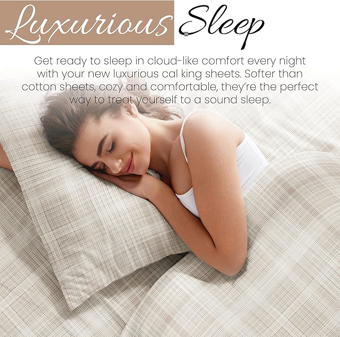 4 Piece California King Bedding Sheets Set (Ray Thatch) - Sleep Better Than Ever with These Ultra-Soft & Cooling Bed Sheets for Your Cal King Size Bed - Deep Pocket Fits 16" Mattress
