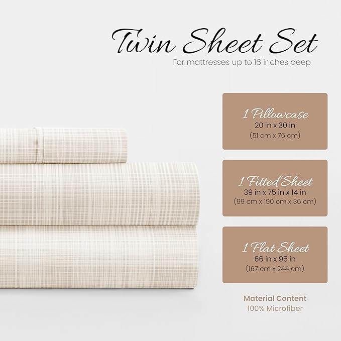 Linen Market 3 Piece Twin Bedding Sheet Set (Ray Thatch) - Sleep Better Than Ever with These Ultra-Soft & Cooling Bed Sheets for Your Twin Size Bed - Deep Pocket Fits 16" Mattress
