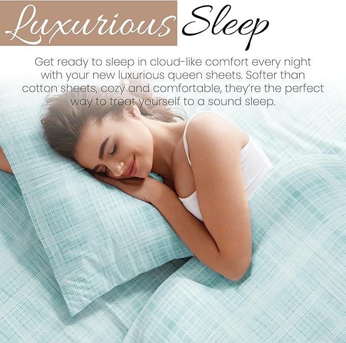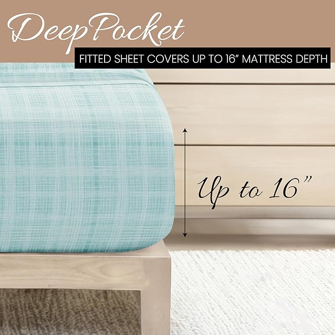 Linen Market 4 Piece Queen Bedding Sheet Set (Aqua Thatch) - Sleep Better Than Ever with These Ultra-Soft & Cooling Bed Sheets for Your Queen Size Bed - Deep Pocket Fits 16" Mattress