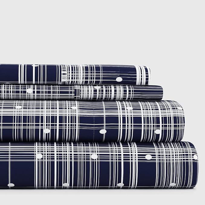 Linen Market 4 Piece Full Bedding Sheet Set (Navy Polka) - Sleep Better Than Ever with These Ultra-Soft & Cooling Bed Sheets for Your Full Size Bed - Deep Pocket Fits 16" Mattress