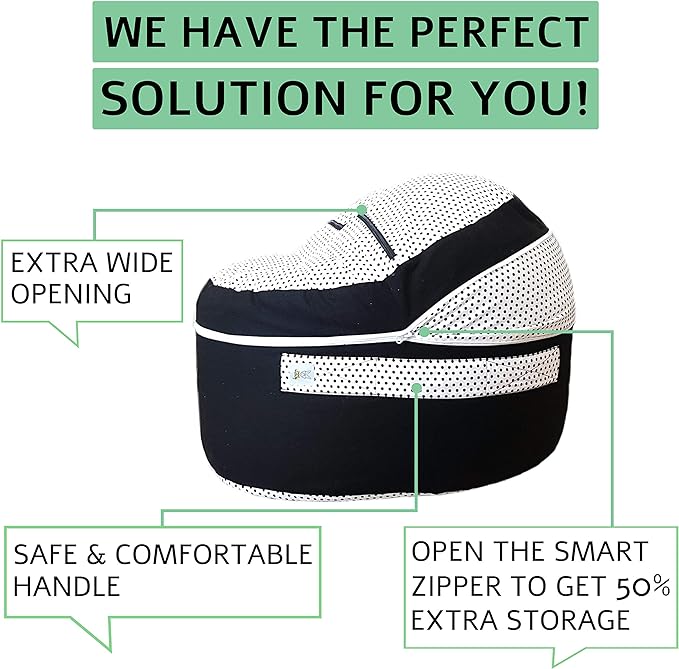 2 Sizes in 1 Stuffed Animal Storage Bean Bag Chair Cover for Kids & Adults | Washable XL Stuffie Seat | 100% Cotton | Pouf Organizer for Plush Toys, Linens, Quilts & Pillows | Black & White