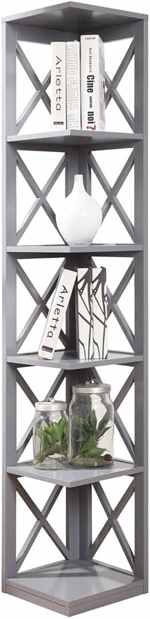 Convenience Concepts Oxford 5 Tier Corner Bookcase, Gray