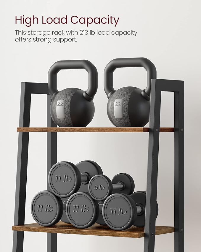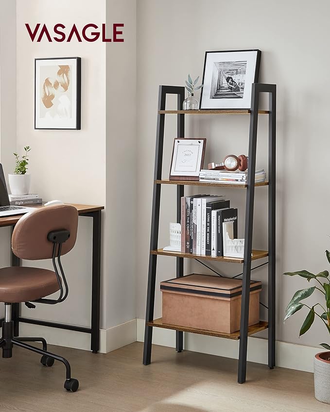 VASAGLE Ladder Shelf, 4-Tier Bookshelf, Storage Rack, Bookcase with Steel Frame, for Living Room, Home Office, Kitchen, Bedroom, Industrial Style, Rustic Brown and Black ULLS44X