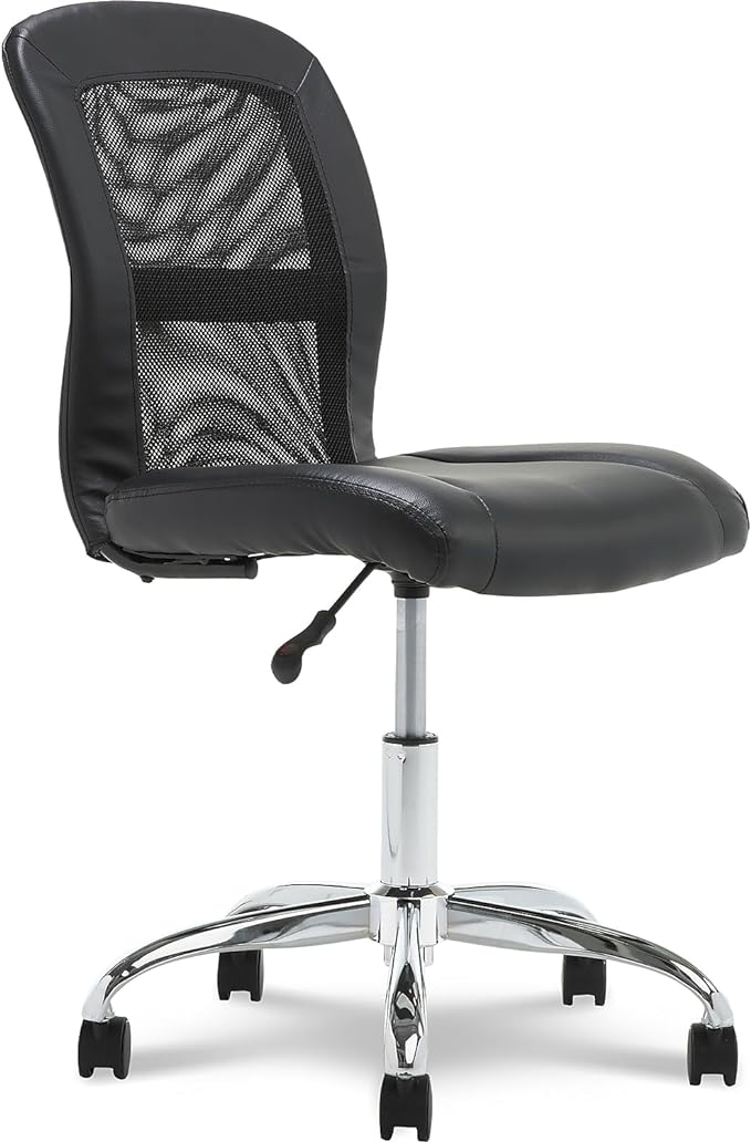 Serta Essential Armless Desk Chair Small TaskChair with Wheels, Breathable Mesh Back, SertaQuality Foam Cushion Seat for Comfort, Functional, Lightweight and Versatile, Task, Black