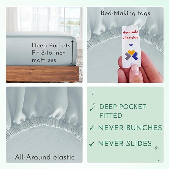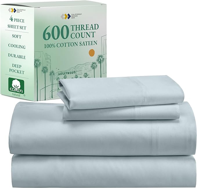 CALIFORNIA DESIGN DEN 5-Star Hotel 600 Thread Count 100% Cotton Sheets Set - Soft & Smooth Queen Sheet for Bed with Deep Pockets, Quality Beats Egyptian Cotton Sheets and Pillowcases (Seafoam)