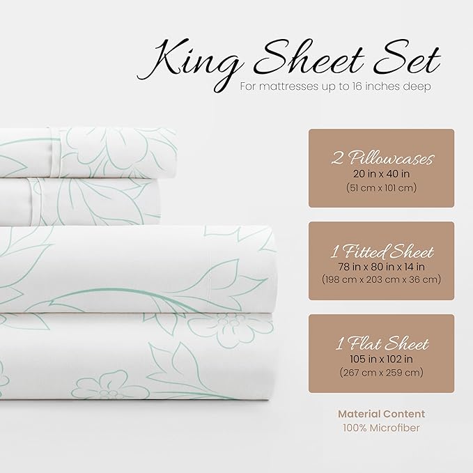 Linen Market 4 Piece King Bedding Sheet Set (Vines Aqua) - Sleep Better Than Ever with These Ultra-Soft & Cooling Bed Sheets for Your King Size Bed - Deep Pocket Fits 16" Mattress