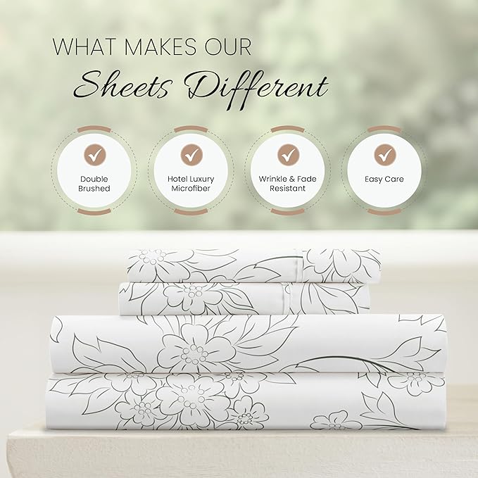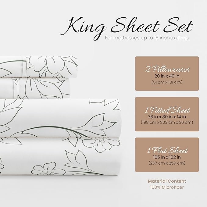 Linen Market 4 Piece King Bedding Sheet Set (Vines Gray) - Sleep Better Than Ever with These Ultra-Soft & Cooling Bed Sheets for Your King Size Bed - Deep Pocket Fits 16" Mattress