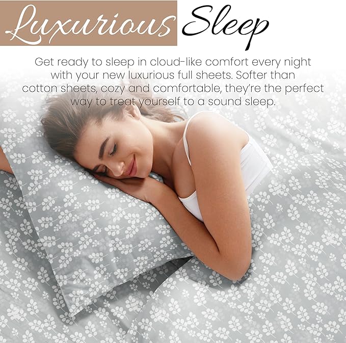 Linen Market Simply Soft Ultra Soft Wheatfield Patterned 4 Piece Bed Sheet Set, Full, Gray (SS-4PC-WHEA-FULL-GR)
