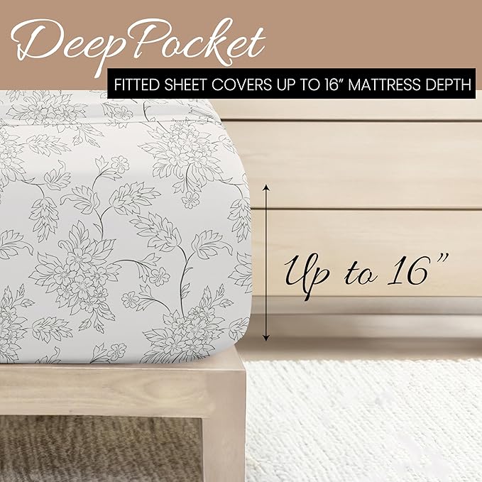 Simply Soft 4 Piece Sheet Set Vines Patterned, Queen, Vines Gray (SS-4PC-VIN-QUEEN-GR)