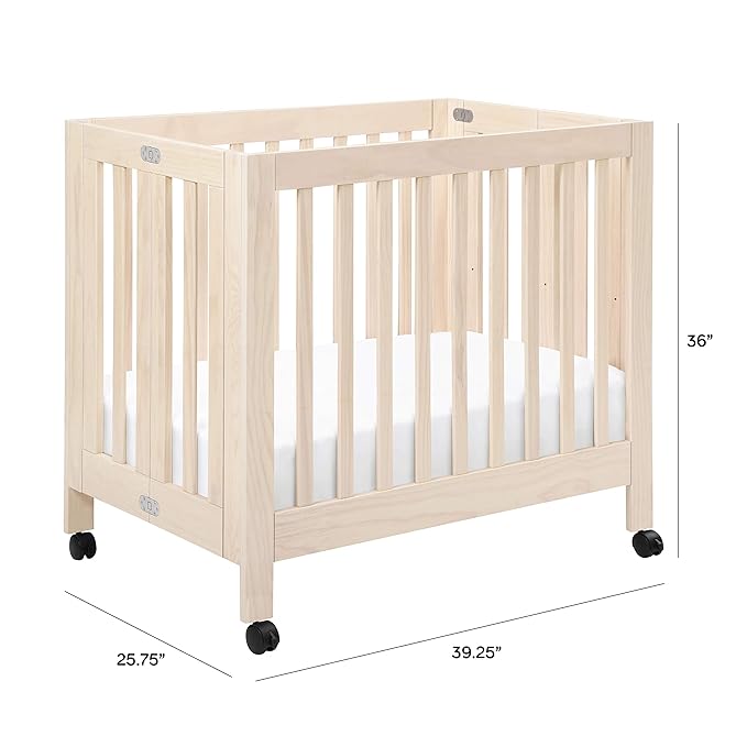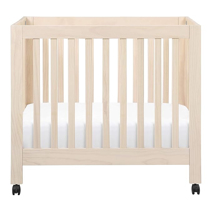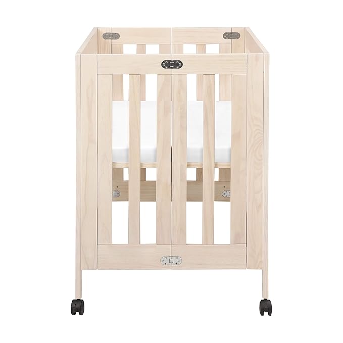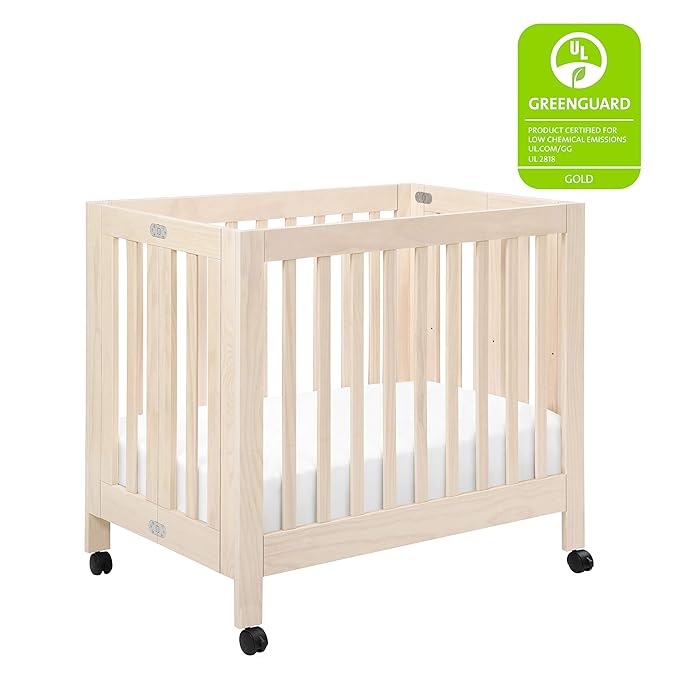 Babyletto Origami Mini Portable Crib Folding with Wheels in Washed Natural, 2 Adjustable Mattress Positions, Greenguard Gold Certified