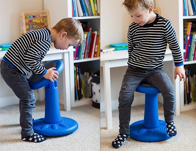 Studico ActiveChairs Kids Wobble Stool, Flexible Seating for Preschool & Elementary Classrooms, Improves Focus, Posture & ADHD/ADD, 14" Active Desk Chairs, Ages 3-7, Blue