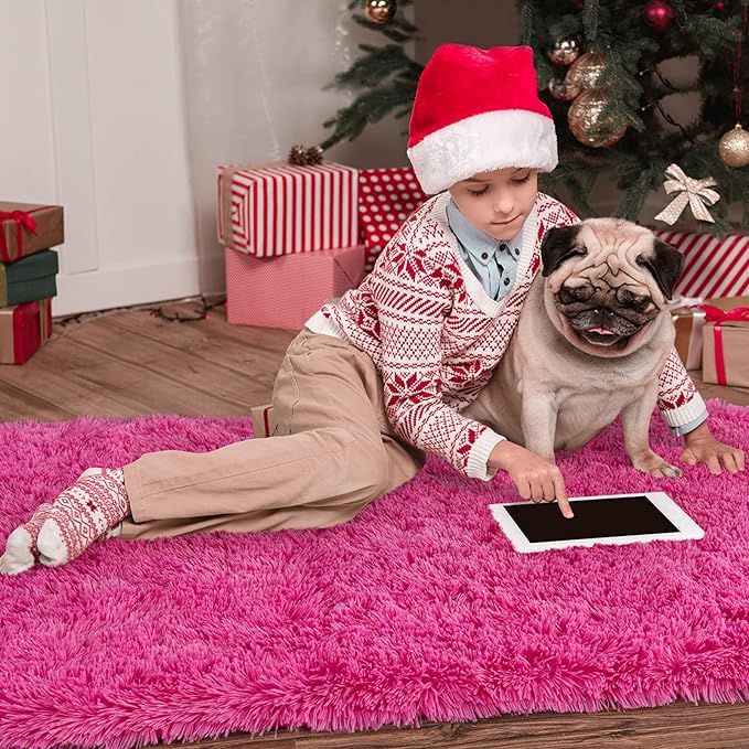 Noahas Ultra Soft Fluffy Bedroom Rugs Kids Room Carpet Modern Shaggy Area Rugs Home Decor 2.6' X 5.3', Hot Pink