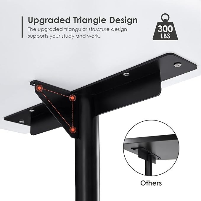 Sunon Home Office 47" Computer Desk Wood Writing Table with Cable Managemant, Black Metal Frame, White