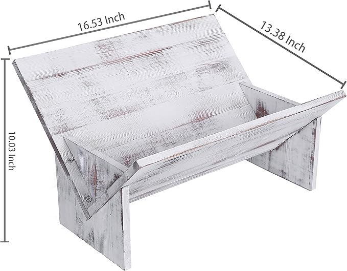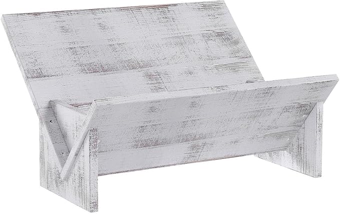About This 16.5-inch tilted wooden tabletop bookshelf in rustic whitewashed finish A unique desktop book rack with upward-tilted design makes...