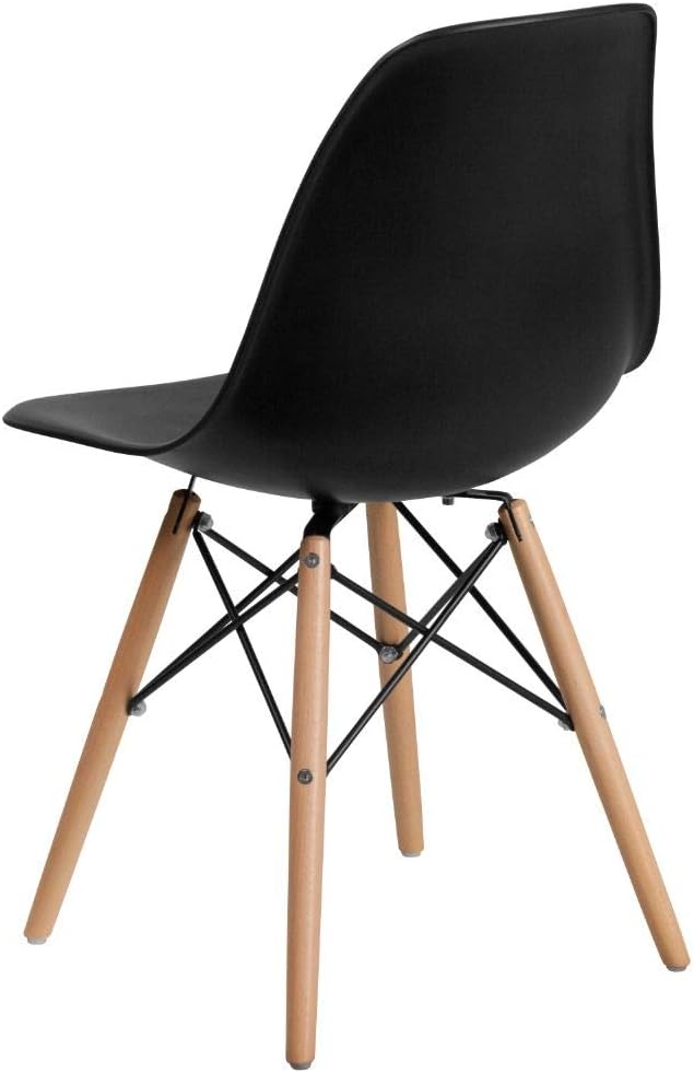 Flash Furniture Elon Series Plastic Modern Dining Chair with Wooden Legs, Mid-Century Side Chair for Dining Rooms and Offices, Black