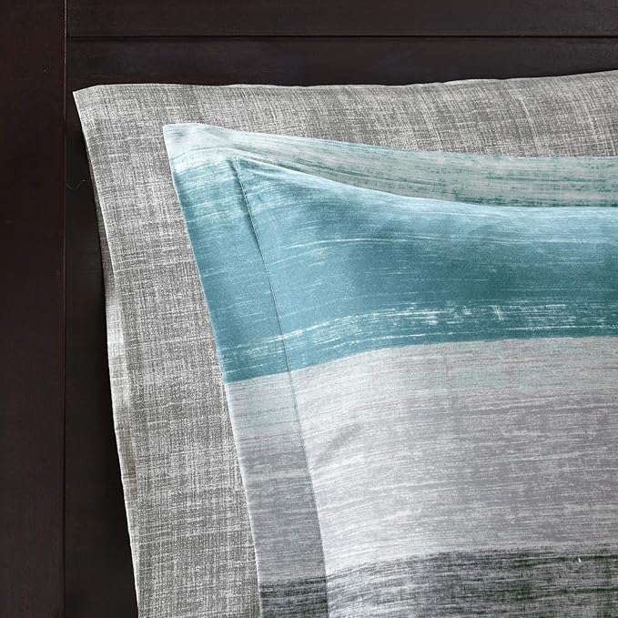 Madison Park Essentials Full Comforter Set, Bed in a Bag Full, Watercolor Print Coastal Comforter & Chambray Cotton Sheet Set, All Season Bedding Set, Saben, Aqua Full (78 in x 86 in) 9 Piece