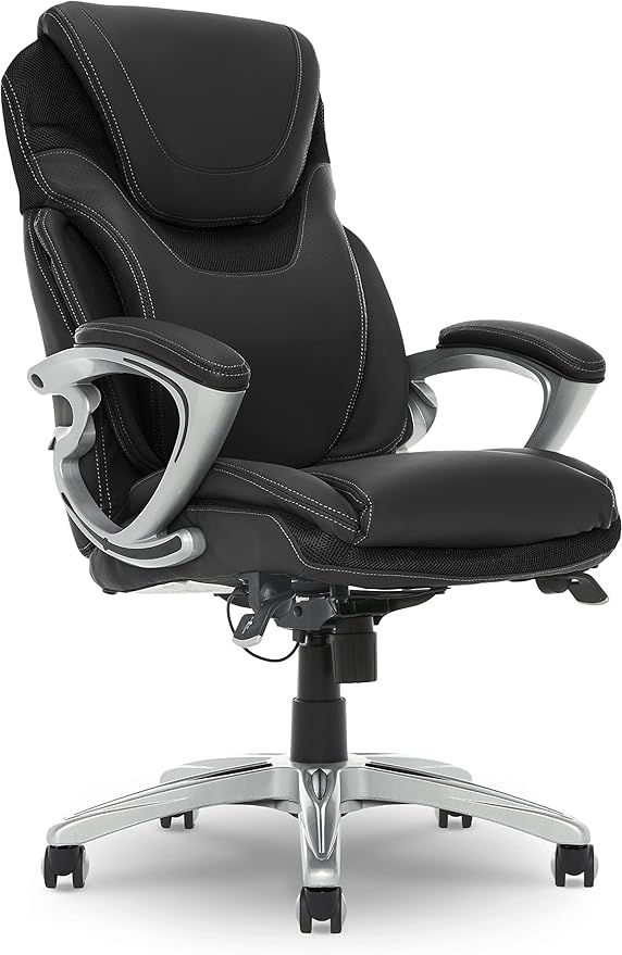 Serta Bryce Executive Office Chair, Ergonomic Computer DeskChair with Patented AIR Lumbar Technology, Comfortable Layered Body Pillows for Cushioning, SertaQuality Foam, Bonded Leather, Black