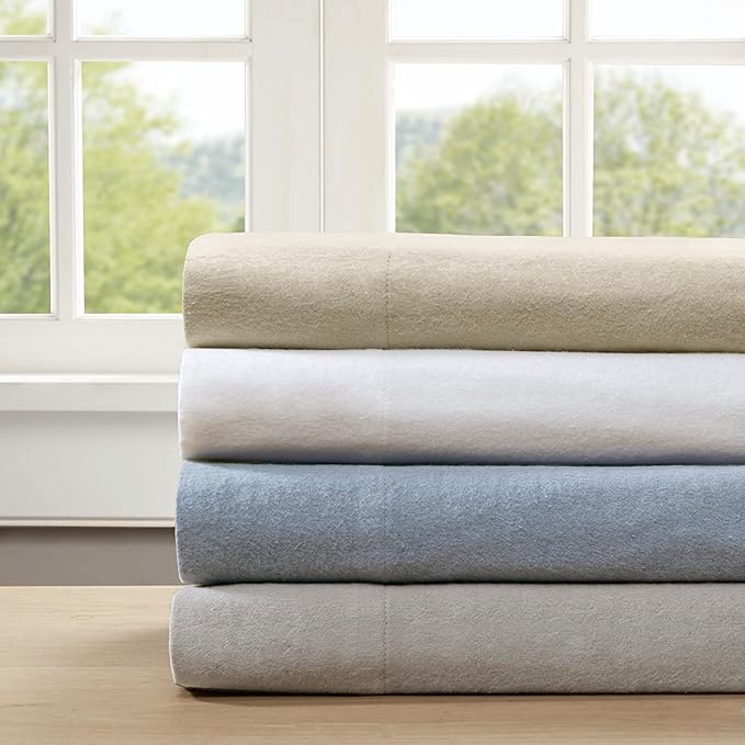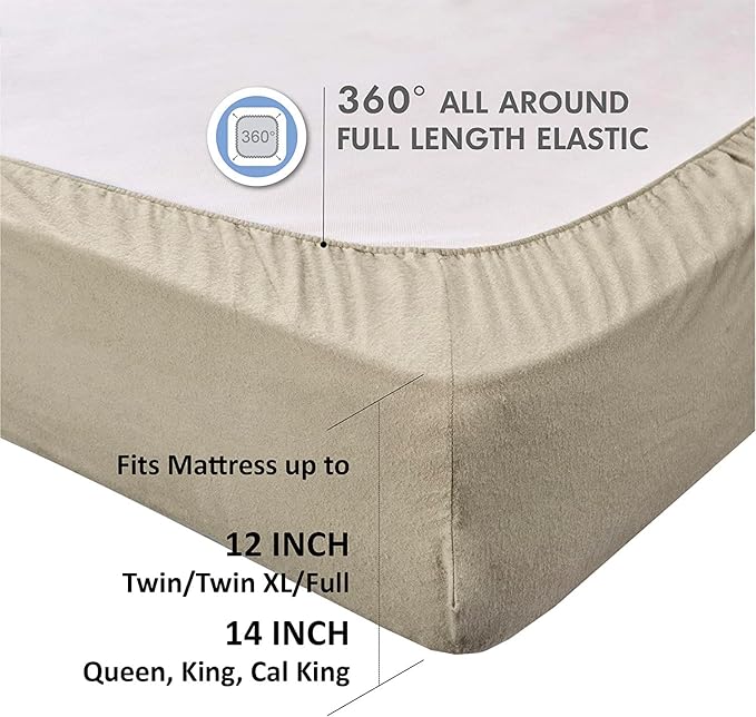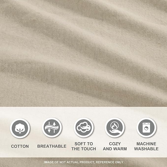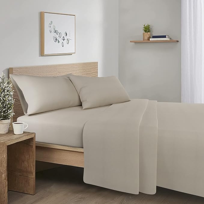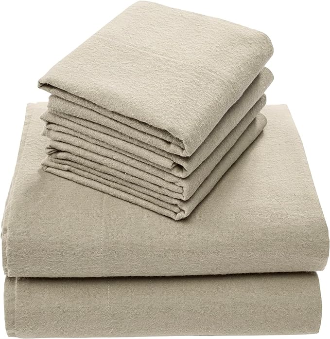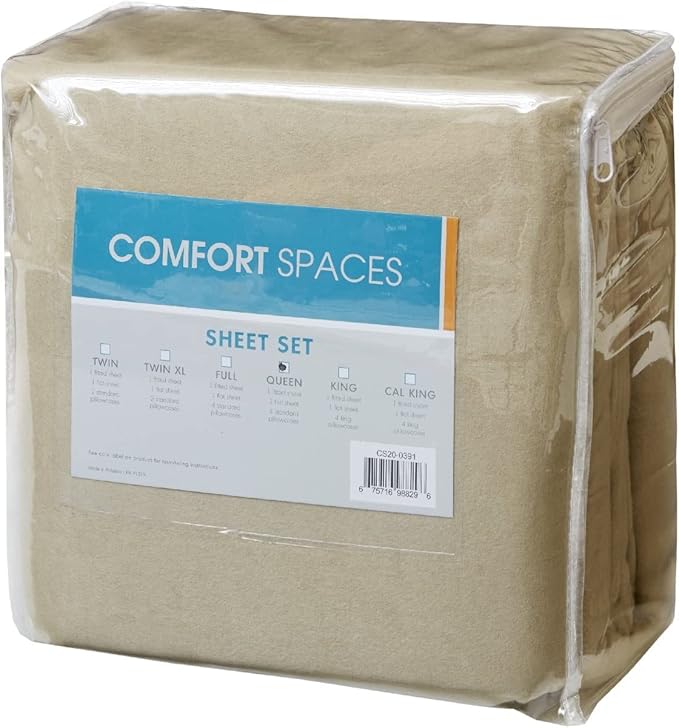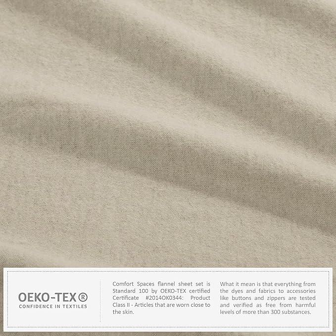 Comfort Spaces Cotton Flannel Breathable Warm Deep Pocket Sheets with Pillow Case Bedding, Queen, Tan Solid 4 Piece
