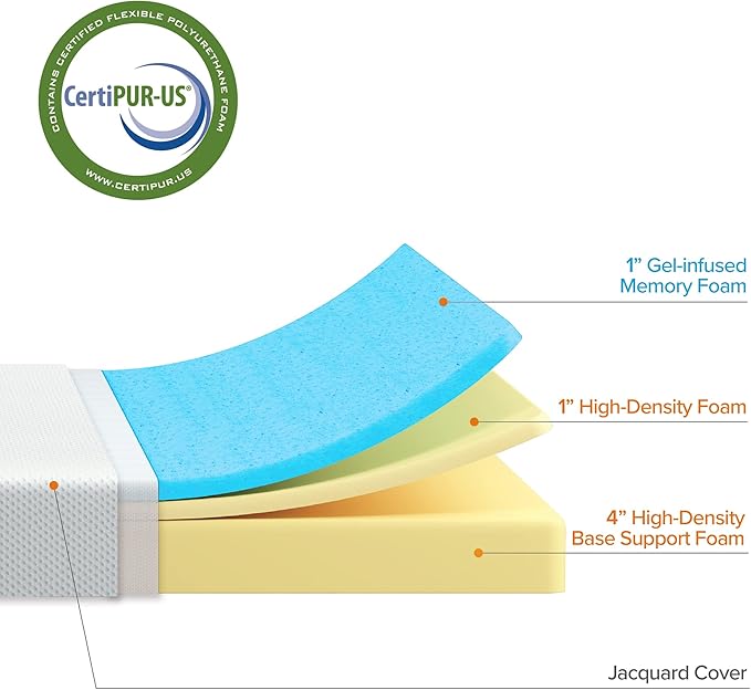 About This Cool, Conforming, and Comfortable, Gel-infused Green Tea Memory Foam for a better night's sleep Mattress layers include: Gel-infused...