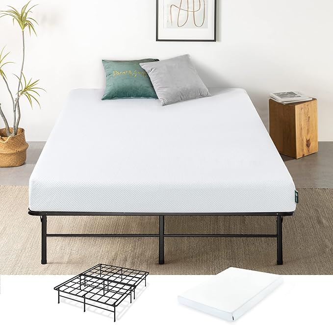 ZINUS 6 Inch Green Tea Cooling Gel Memory Foam Mattress and Super Heavy Duty SmartBase Metal Mattress Foundation Set / Bed and Mattress Set / No Box Spring Needed / Mattress in a Box, Twin